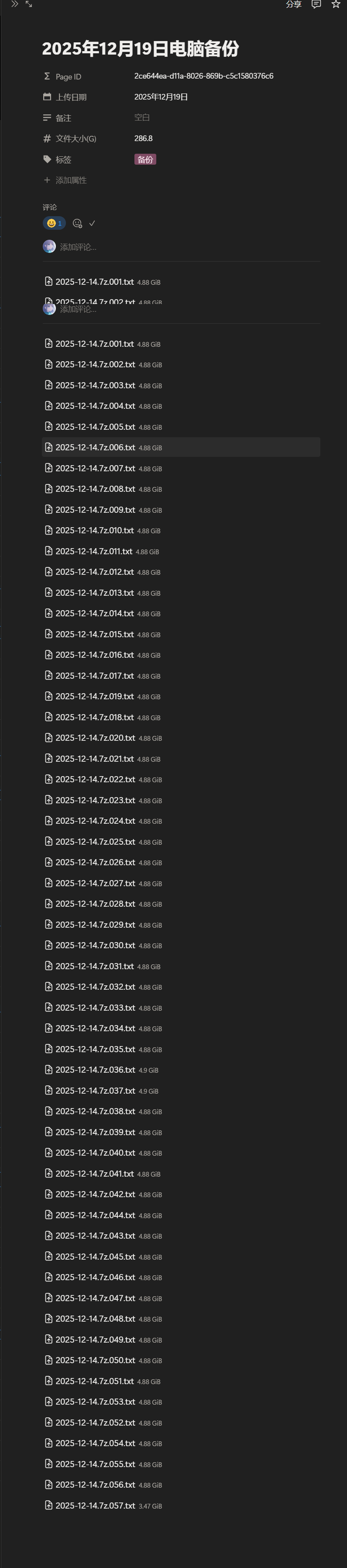Notion官方API并不支持压缩包等其他文件上传,所以我的程序会把不合规的文件自动添加后缀.txt进行欺骗