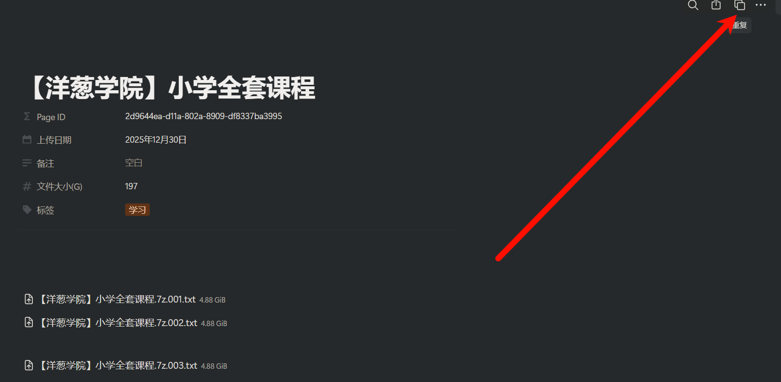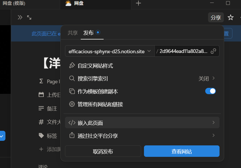 我们可以把含大量文件的页面发布为网站,其他人打开网站后可以进行复制,就像网盘中的"转存"功能