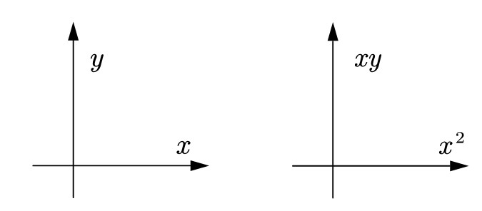 同样的,第二个坐标系的 $x^2$ 可以代表自变量的平方,而 $xy$ 则是自变量和函数值的积