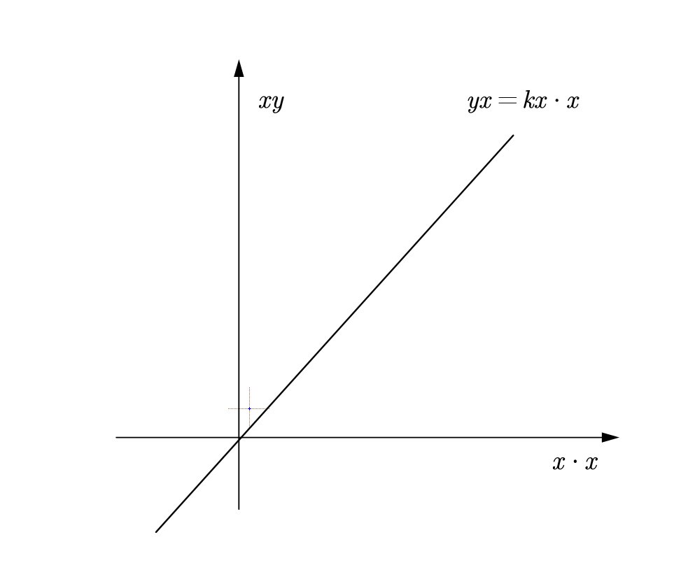 我们把两个坐标轴都乘$x$,那么x轴所代表的意义是 $x^2$ ,y轴所代表的意义是$xy$