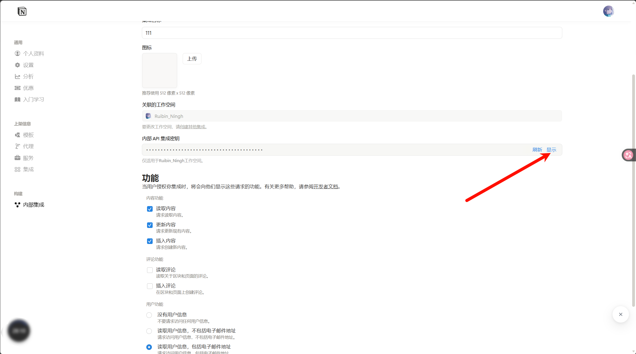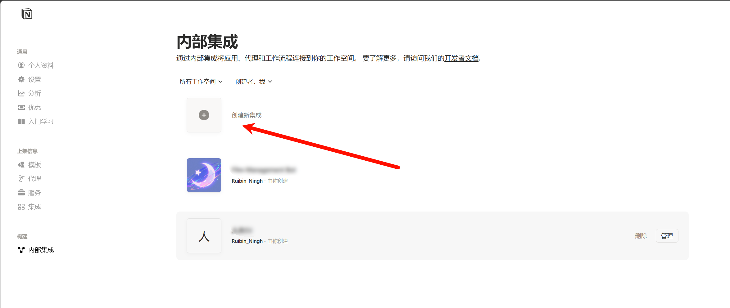 创建Notion内部集成